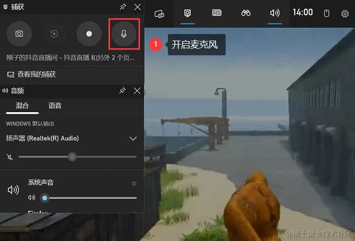 步骤2:在Xbox Game Bar捕获页面中,点击麦克风图标来启用您的麦克风,这将允许录制您的声音。