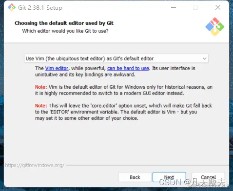 git编辑器的选择,使用默认选择即可,点击next进入下一步;