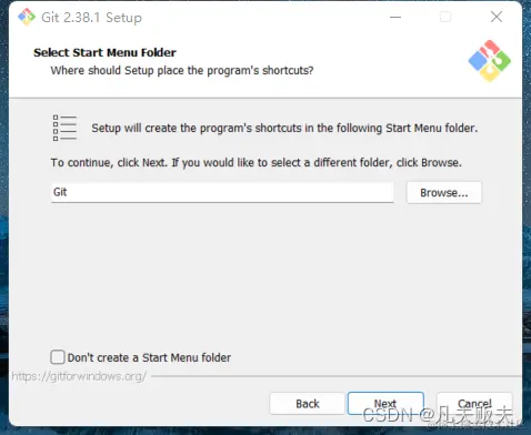 git的目录选择,以及是否创建到开始目录,默认选择即可,点击next;