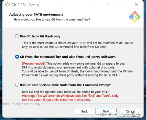 配置git在windows中的path环境,使用默认选项即可,点击next进入下一步;