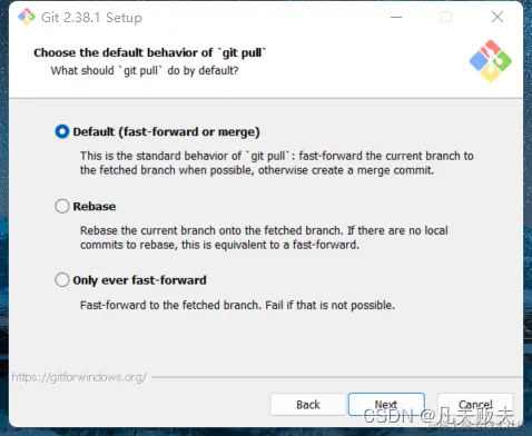 选择默认的”git pull”行为,一般默认即可,点击“Next”进入下个页面;
