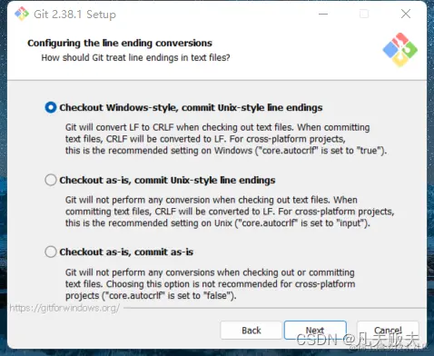 配置行结束转换,一般默认即可,点击“Next”进入下一步;