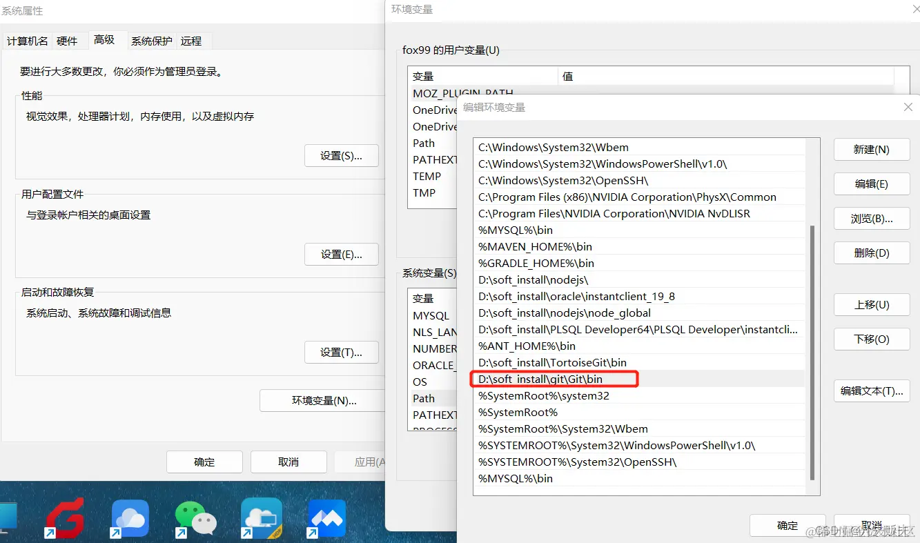 系统属性-->高级-->环境变更-->系统变更-->Path里追加git的bin目录的全路径。