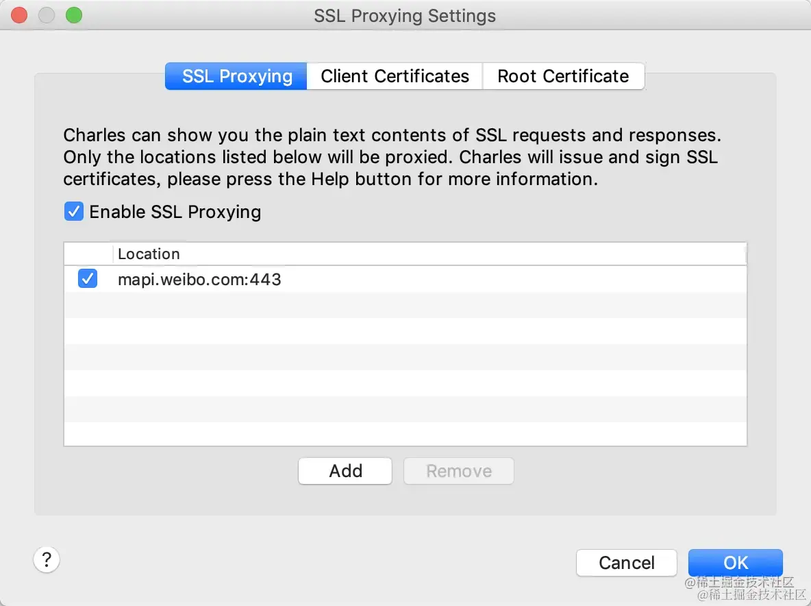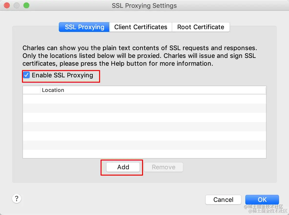 勾选Enable SSL Proxying,点击Add