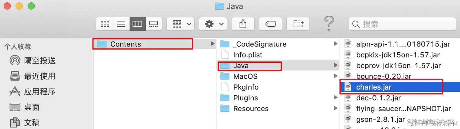 然后点击Contents->Java->将我们下载下来的charles.jar替换这里的charles.jar