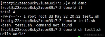 然后,根据我们之前所说,通过FTP把这个文件传到/demo目录下,然后通过sh命令执行脚本,激动人心的时刻到来了~