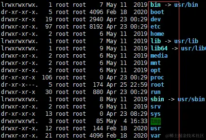 | 文件类型和权限 | 硬链接引用计数 | 所有者 | 所属组 | 文件大小 | 最后修改时间 | 文件名 |