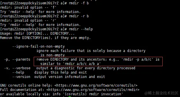 - -p,允许创建目录及其子目录,比如mkdir -p a/b/c。