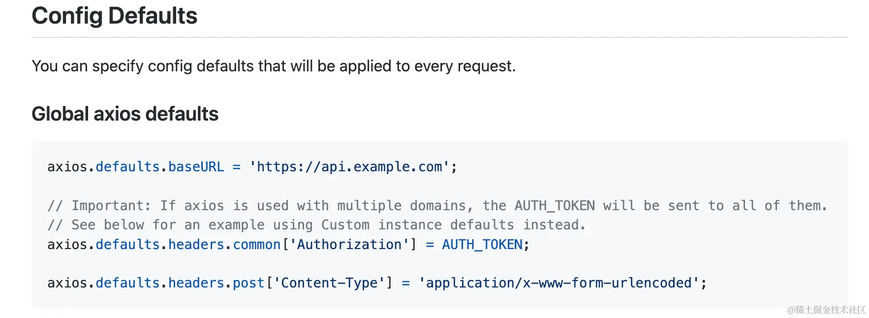 上一章我们完成了拦截器的代码实现,这一章我们来看看配置化是如何实现的。首先,按照惯例我们来看看axios的文档是怎么说的: