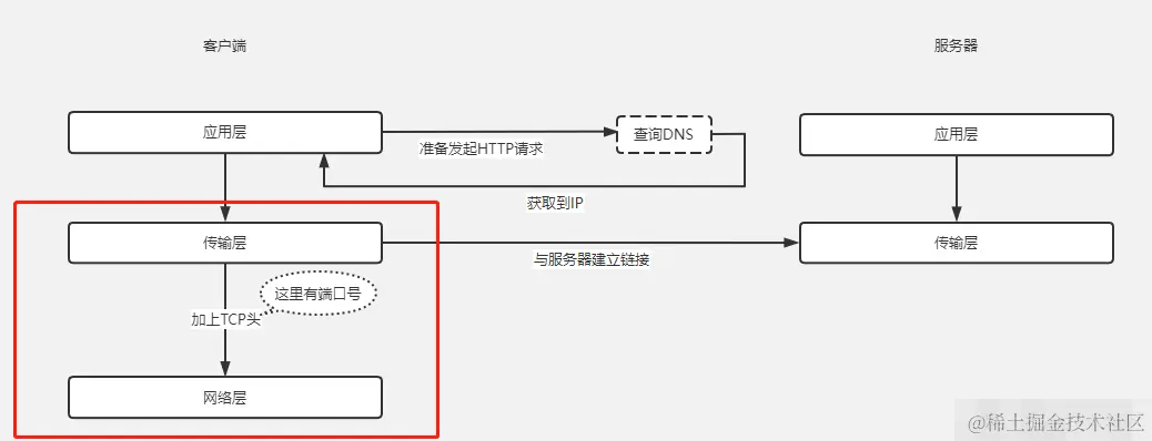 TCP会在应用层的HTTP包的基础上再加上TCP头,这里面包含了源端口号和目标端口号,有了端口号,我们就可以确定目标端口号从而找到目标应用,当信息返回的时候还会用到源端口号,这个我们后面再说。