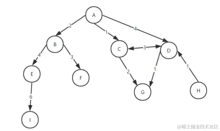3、路径是顶点V1,V2.....Vn的一个连续序列,其中Vi和Vi+1是相邻的。比如上图中的ACDG,ABEI都是一个路径。