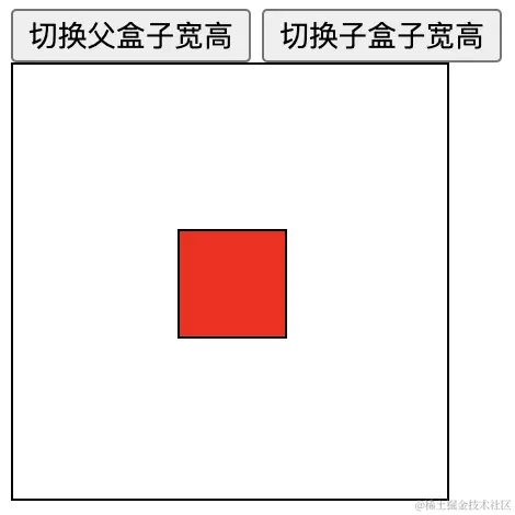 那我用百分比不行么?不行,因为你不知道父盒子的宽高,而如果一定要只使用translate,只能在盒子变化的时候通过js来计算父子盒子的宽高,从而重新设置子元素的translate基于自身移动的X轴与Y轴的值。不信我们试一下: