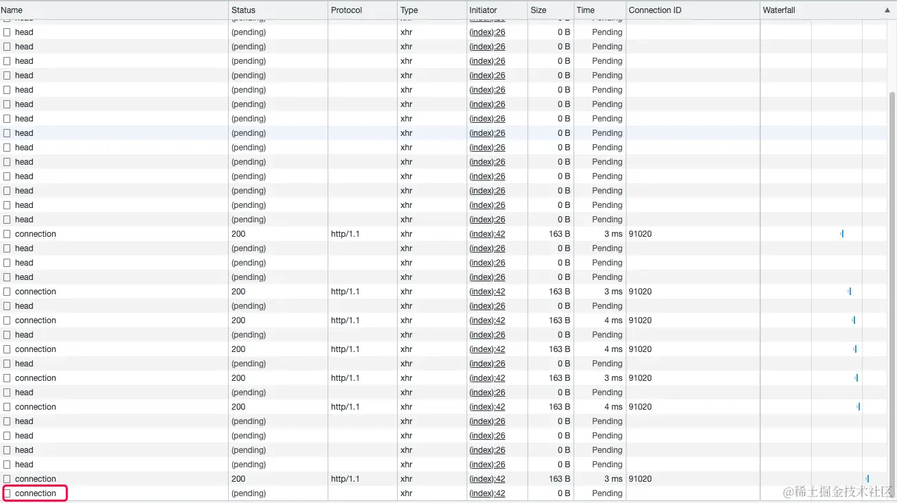 当你发送很多无响应的HTTP请求后,等一会,再点有响应的HTTP请求,你会发现卡死了,我猜就是因为那些无响应的HTTP请求占用全部六个TCP连接。当然,你也可以通过Wireshark来验证这一点。不多说啦~