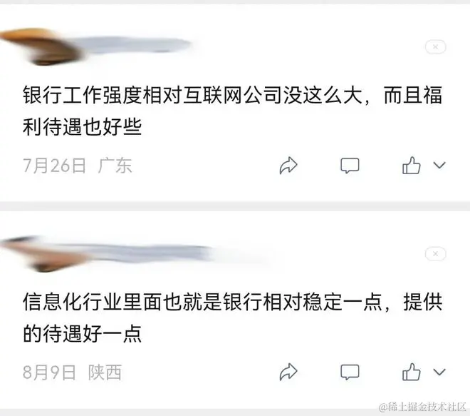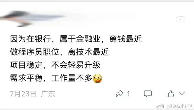 而下面大家的回应,似乎也印证了银行更适合我们程序员。