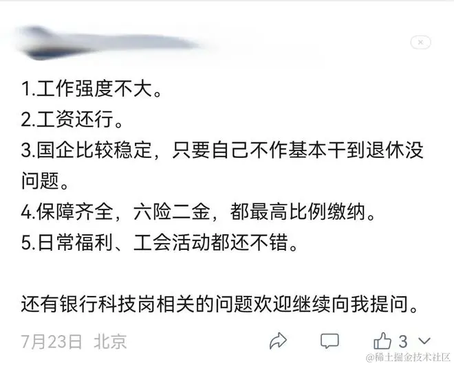综上所述,银行技术岗是不是程序员最好的选择,没有绝对的答案!!!