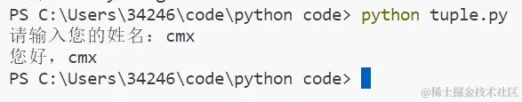name = input("请输入您的姓名:")print("您好," + name)