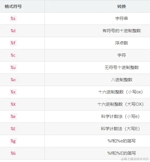 常用的格式化符号: