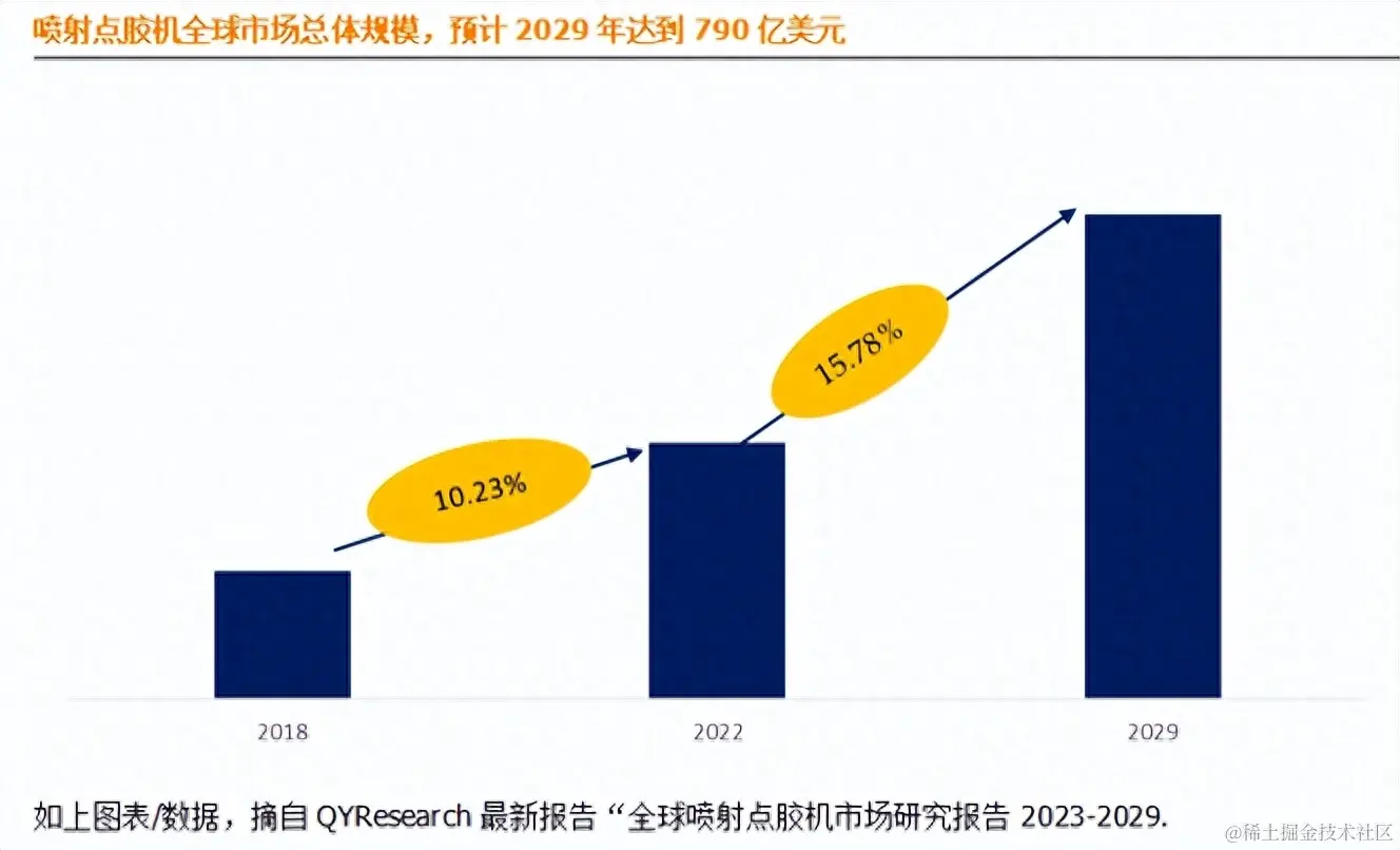 根据QYResearch最新调研报告显示,预计2029年全球喷射点胶机市场规模将达到790亿美元,未来几年年复合增长率CAGR为15.78%。