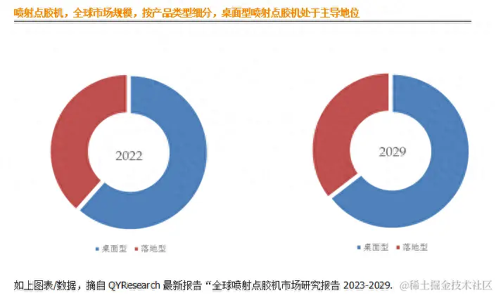 就产品类型而言,2022年桌面型喷射点胶机是最主要的细分产品,占据大约61%的份额。