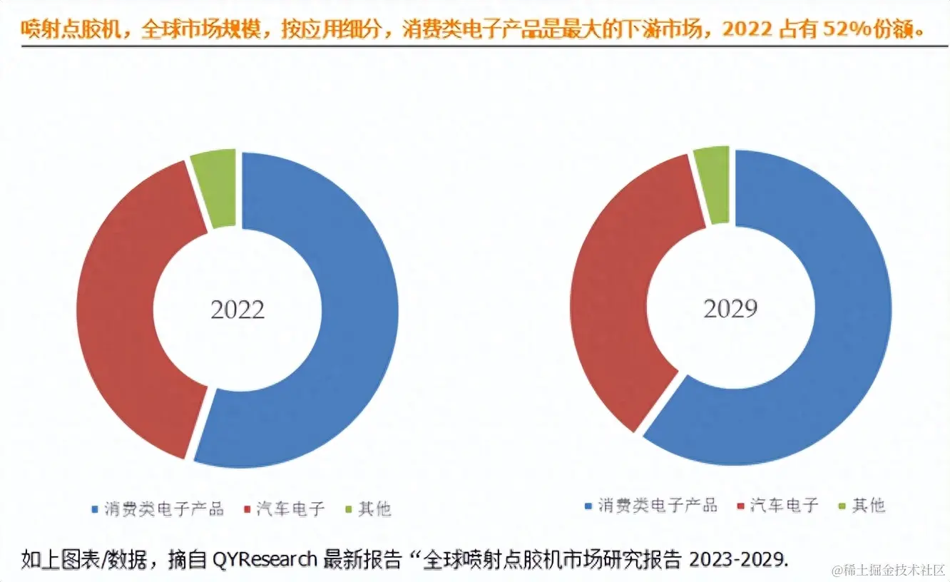 就产品类型而言,目前消费量电子产品是最主要的应用领域,2022年占据大约55%的份额。