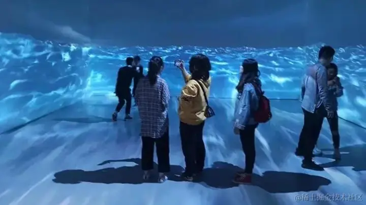 地面互动投影系统常用于商场、游乐园、景区等场景,是通过顶部的投影设备将影像效果投射到地面,体验者利用双脚踩踏与场景产生互动效果,搭载投射出不同的虚拟场景。