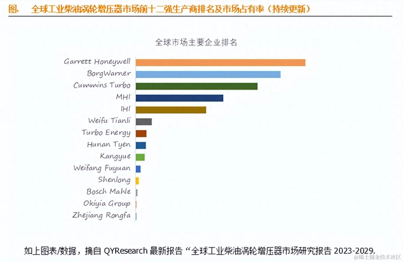 具体详情见行业报告:2023全球与中国工业柴油涡轮增压器市场专精特新“小巨人”企业调研报告