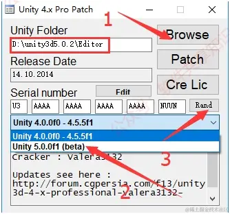 14.点击Browse选择D盘unity3d5.0.2文件夹下Editor文件夹,然后选择Unity 5.0.0f1(beta)然后点击Rand。