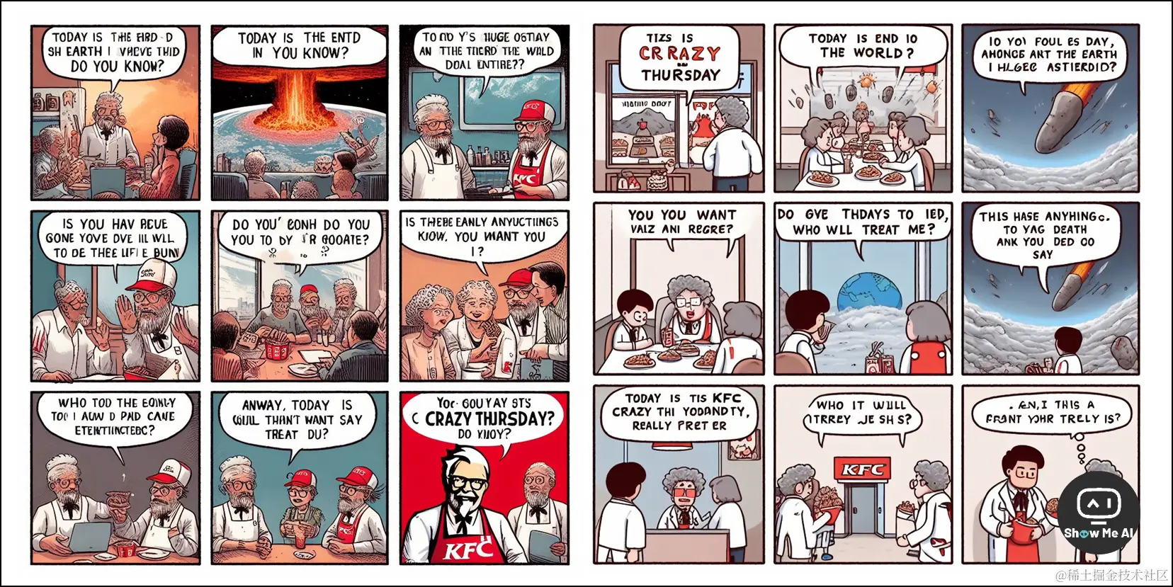 🧩 疯狂星期四,使用 Bing 绘制「V我50」主题漫画