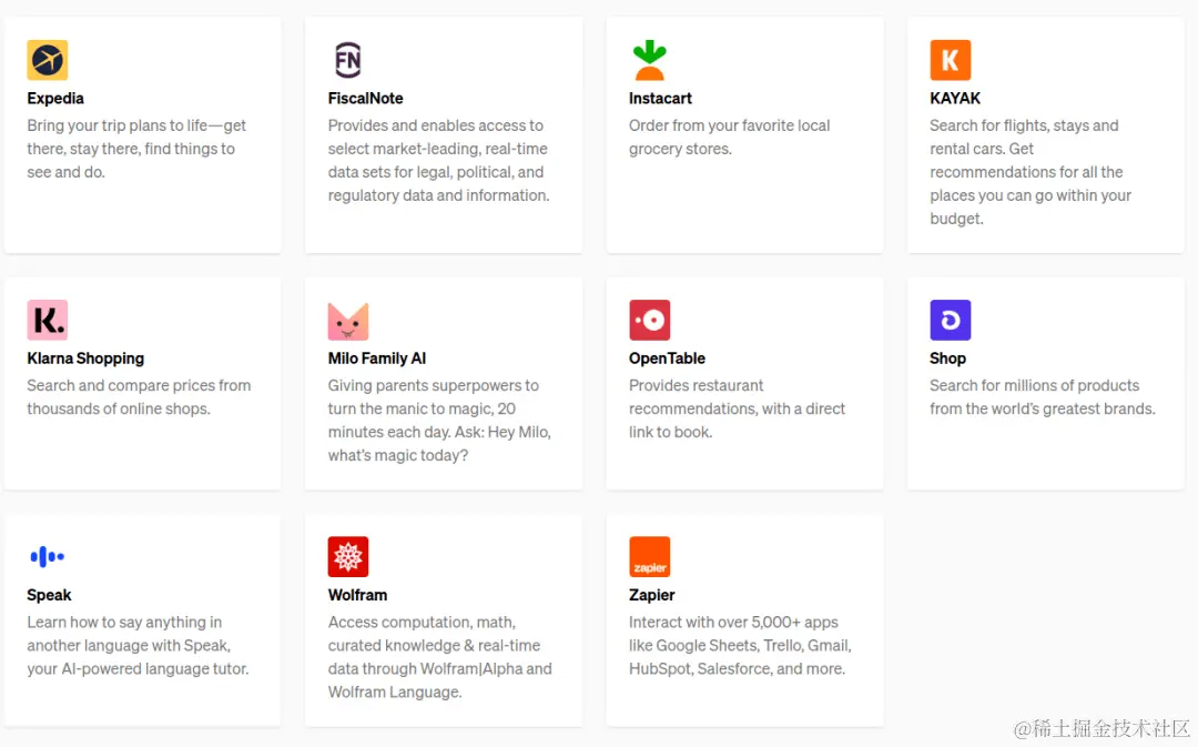 于是,很多大模型都在打造自己的“应用中心”。OpenAI上线了ChatGPT插件,付费用户可以调用插件解决某类需求,目前ChatGPT上已经有近1000个插件;国内的百度也在积极布局,发布文心一言插件生态平台“灵境矩阵”,并计划提供百亿流量、亿元基金等激励来扶持插件生态。
