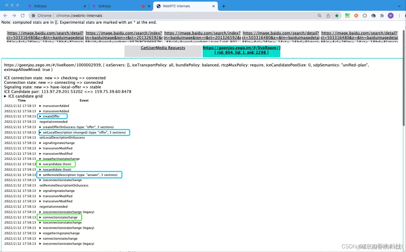 2、另打开一个tab页面,输入: chrome://webrtc-internals/