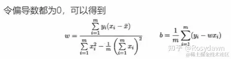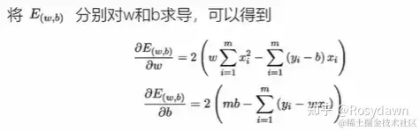 将损失函数视作是关于ω、b的函数,分别对ω、b求偏导数,再令偏导数为0,可以将偏导数为0的点视作取到最小值的点,这时可以求解ω、b的值。