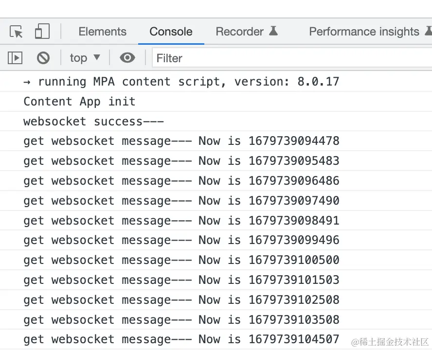 发送之后,服务端也可以向客户端发送信息,例如我这里,我设置服务端每秒向客户端发送当时的时间戳~