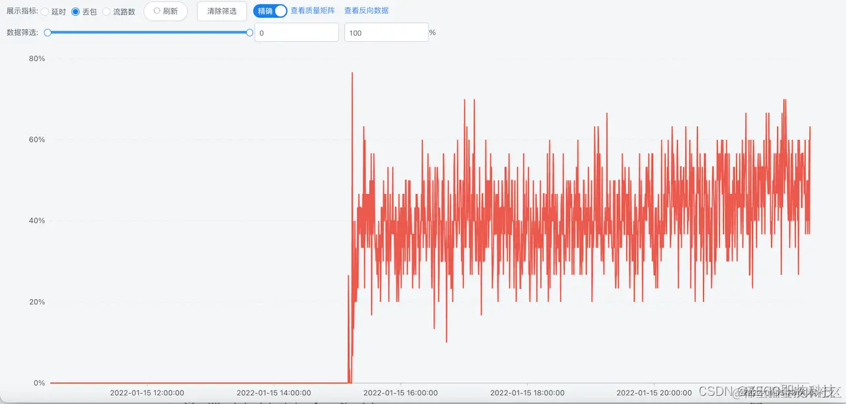 - 通过质量算法对终端用户的网络进行打分来评价推拉流质量的好坏,具体算法可以理解为当用户的 rtt 和丢包率落在较好的区域是是加分,落在坏的区域是减分,rtt 和丢包越小加分系数越高,rtt 和丢包越大减分系数越高得出一个百分制分数。