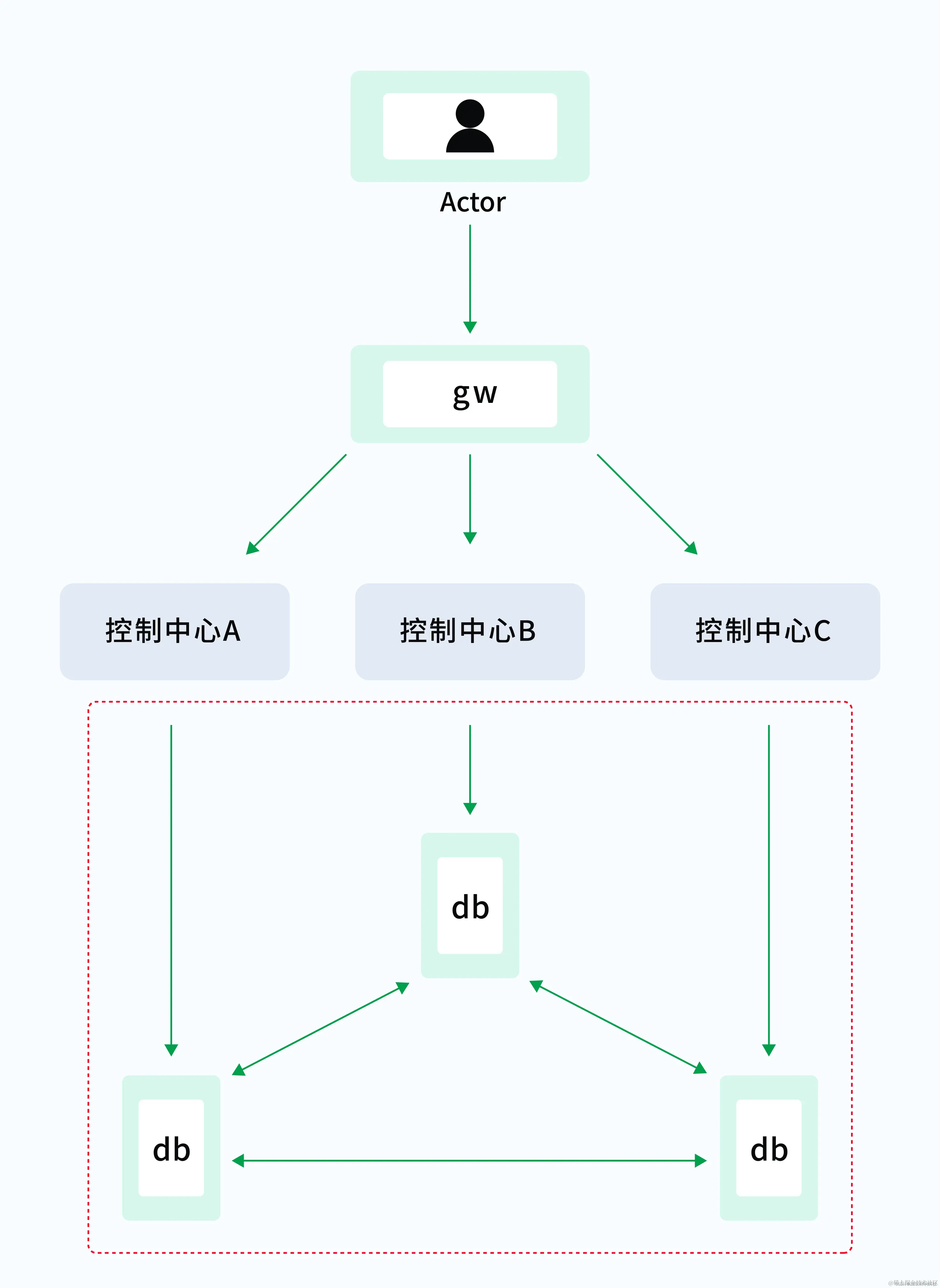 面对这种灾难级别的故障,ZEGO 实现了全球多中心架构。当控制中心 A 故障时,可以及时关闭故障中心的入口。可参考图 2,多中心简易版架构图: