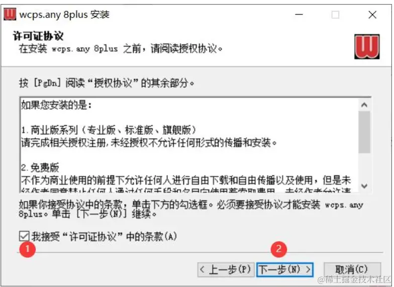 上图:选择接受协议后,点击下一步