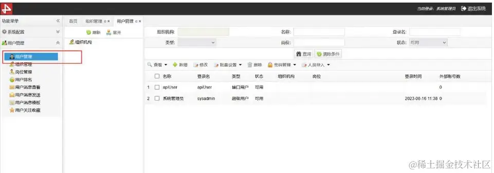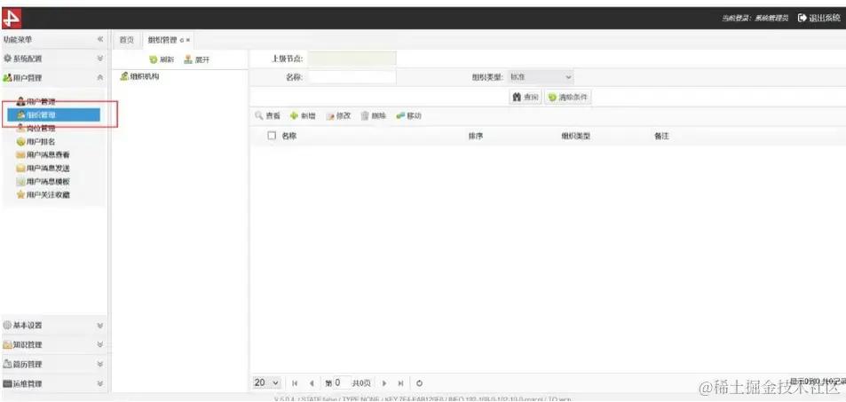 如图,进入组织机构菜单,该菜单下可以添加修改组织机构信息