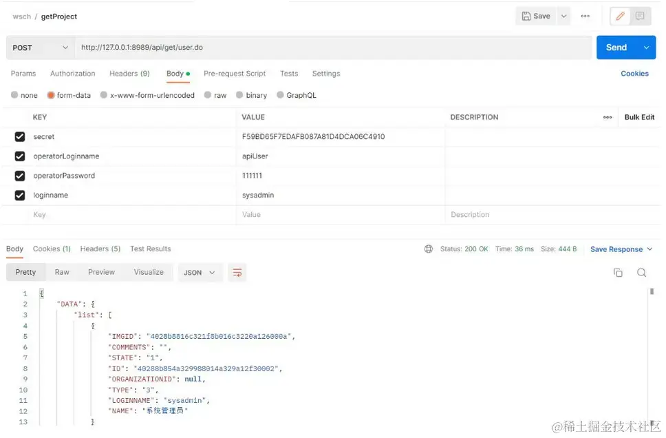 如下图,以用户查询接口为例调用该接口