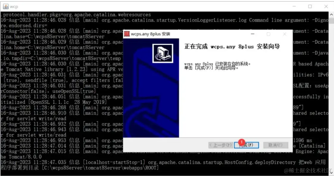 上图:点击完成,继续等待服务启动