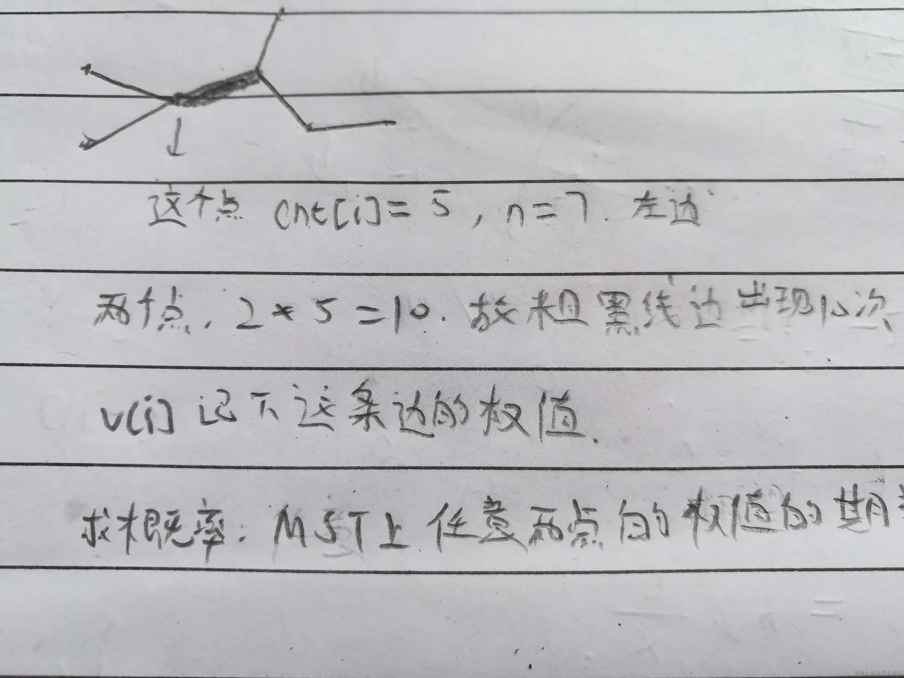 因为n很大所以用kruskal求最小生成树求出最小花费,然后dfs搜索回溯的办法找到所有情况每条路用过的次数并求出总花费,用总花费除以所有可能发生的次数(n*(n-1)/2)就是我们要求的期望