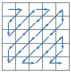 在图像编码的算法中,需要将一个给定的方形矩阵进行Z字形扫描(Zigzag Scan)。给定一个n×n的矩阵,Z字形扫描的过程如下图所示:
