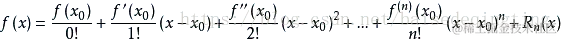 其中, 表示f(x)的n阶导数,等号后的多项式称为函数f(x)在x0出的泰勒展开式,剩余的Rn(x)是(x - x0)^n的高阶无穷小。