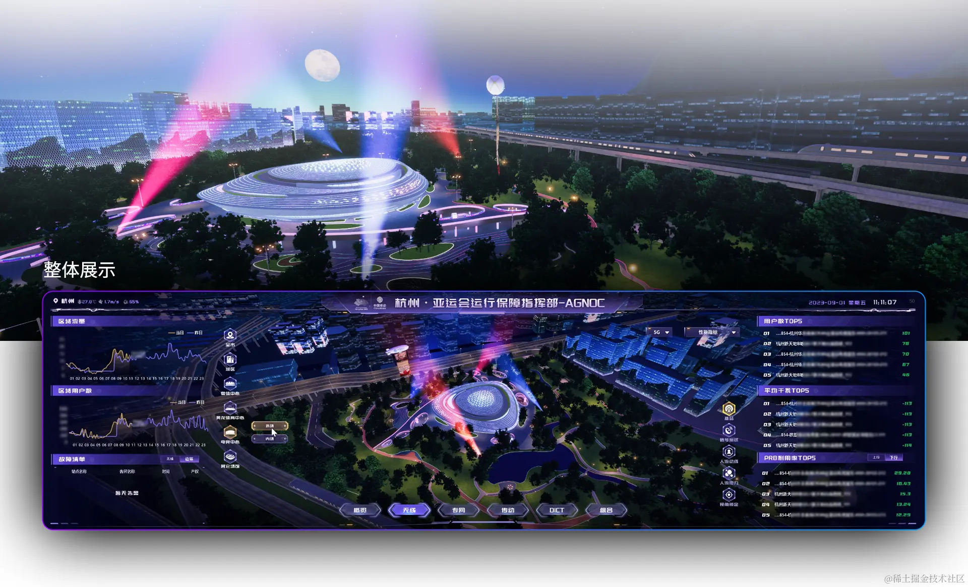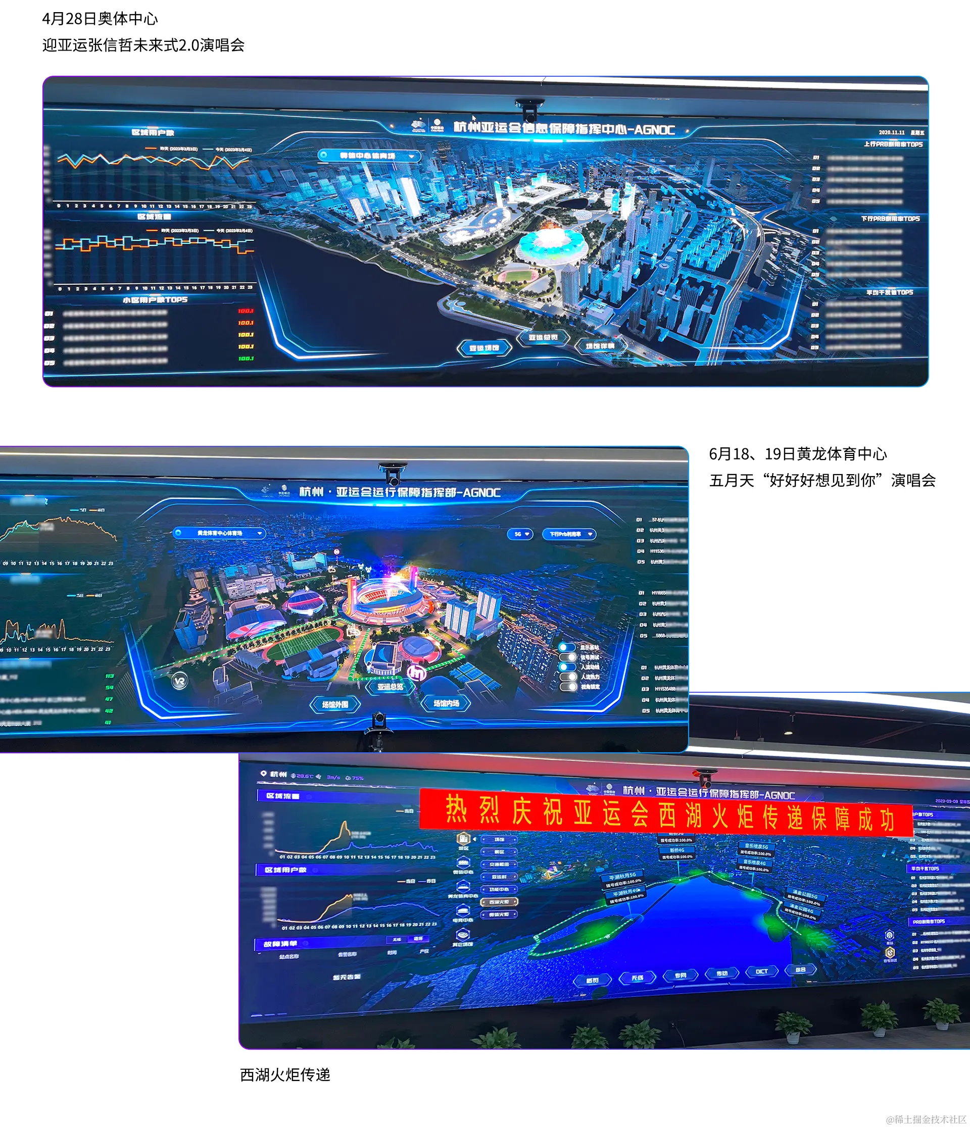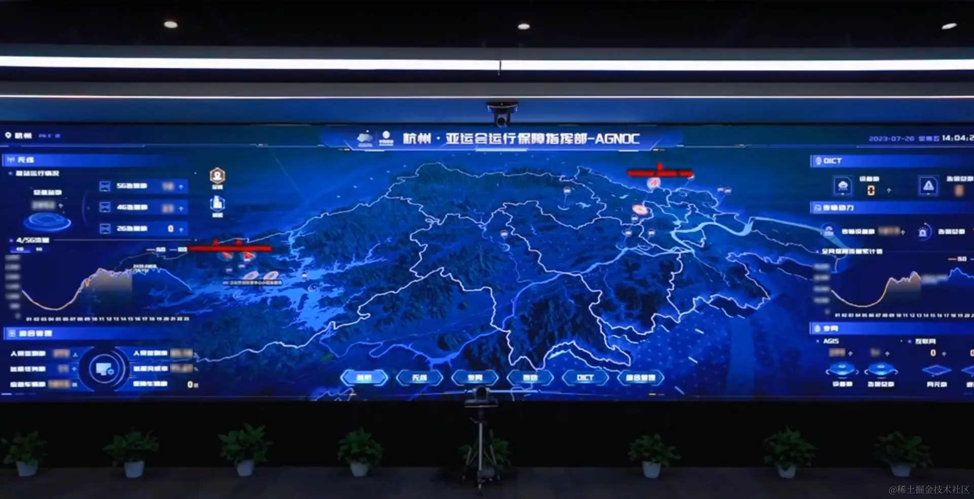我司参与过冬奥会、春晚的网络运行保障系统的建设,并且在去年也参与了杭州亚运会的其他数字孪生项目,有着丰富的场景素材以及项目经验。了解到这一点,中国移动杭州分公司于今年4月份找到我们,委托我们参与杭州亚运会网络运行保障系统数字孪生部分的开发。