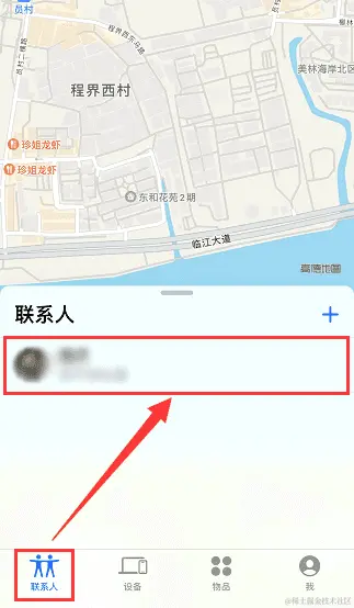 步骤2:在列表中点击想要定位的联系人即可在地图上查看对方的iPhone位置。