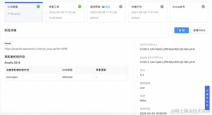 对 CVECenter 评估结果和触发流程进行了优化,当前评估结果不再直接和推送ANAS 的数据保持一致,对于 ANAS 上已有的数据,CVECenter 不会推送覆盖;对 ANAS 没有发布的数据,CVECenter 会根据评估结果自动生成数据模板并推送到 ANAS 上。