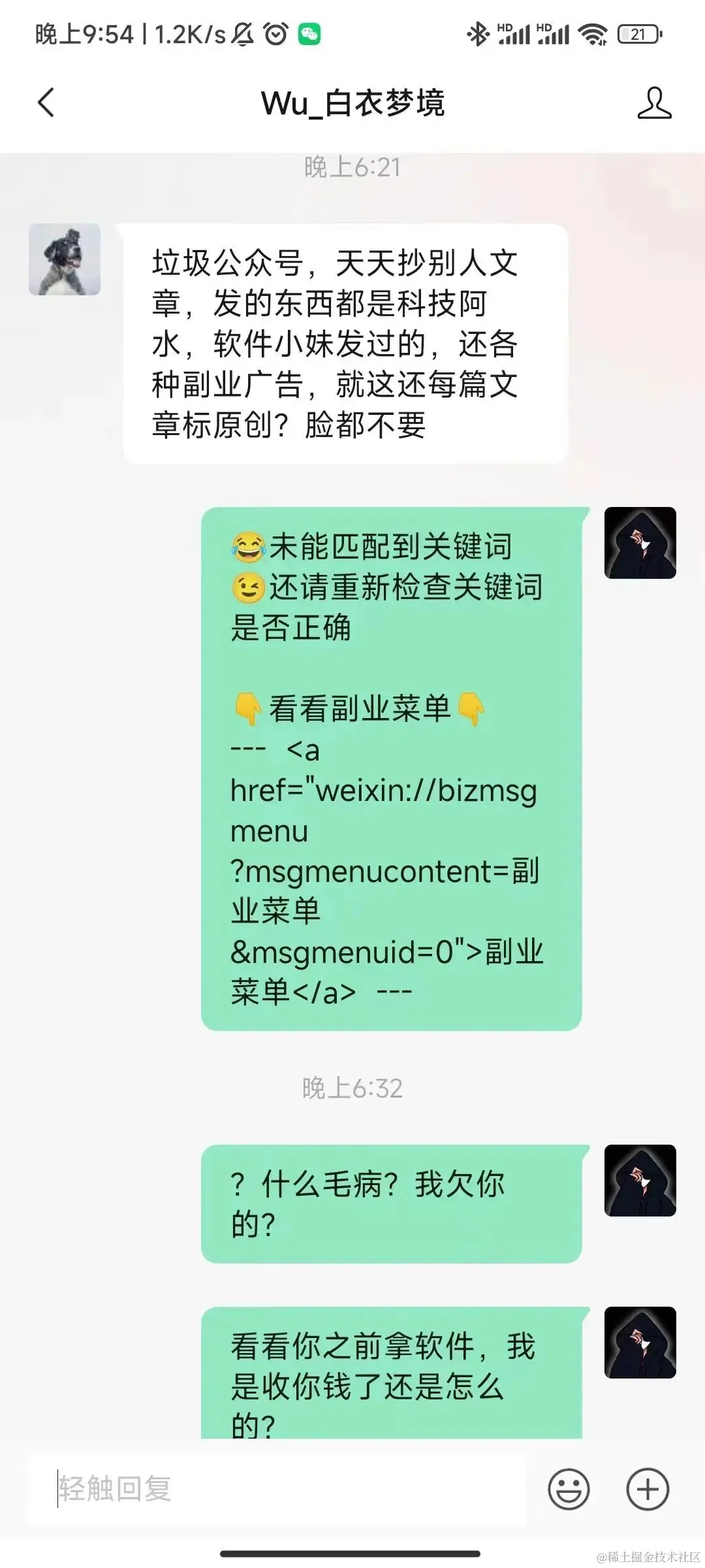 也不说一次被骂就上纲上线,你说我让你付费了但是我没提供你应该的服务那你骂我是应该。关键是我分享的东西你免费拿的,拿完就走的也很多,你还来骂我搞得好像我欠你什么一样,互联网是让你出来学习的,不是让你出来显摆你的智商的