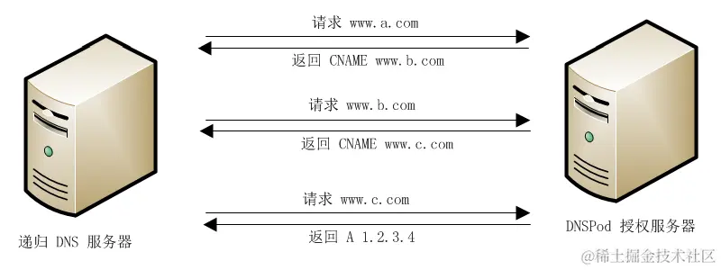 传统解析路径,一个CNAME解析会有多次交互