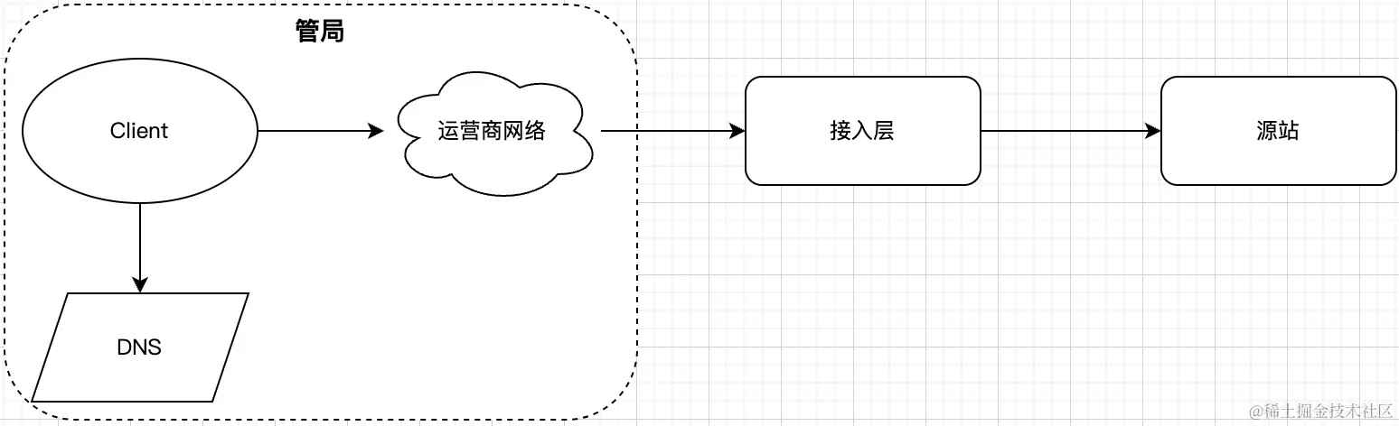 思考一下用户的请求是怎么到业务系统的?用户首先打开终端(浏览器、APP等),然后需要经过dns服务器解析出来域名的目标IP,然后经过公网,访问到了我们业务系统的公网组件;隐藏在其中的还有DNS的递归解析、运营商网络设备、国家管局的管控等。所有这些事项,都跟用户访问成功有关,我称它为广义接入层。如下图:
