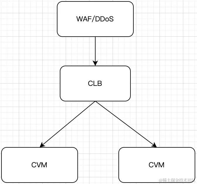 接触多家客户后,发现大家的接入层架构大都如下图所示,WAF/DDoS组件客户要么选其中之一,要么都不选或自荐。CLB后面挂CVM,CVM上面部署Nginx或者Kong等组件。