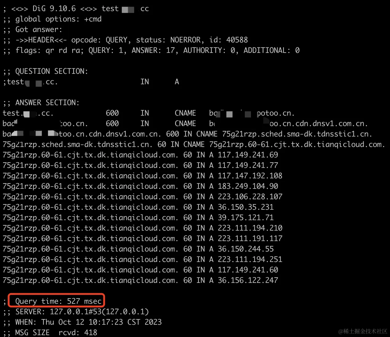 经过CNAME加速后,一次交互即可拿到结果,与A记录一致。