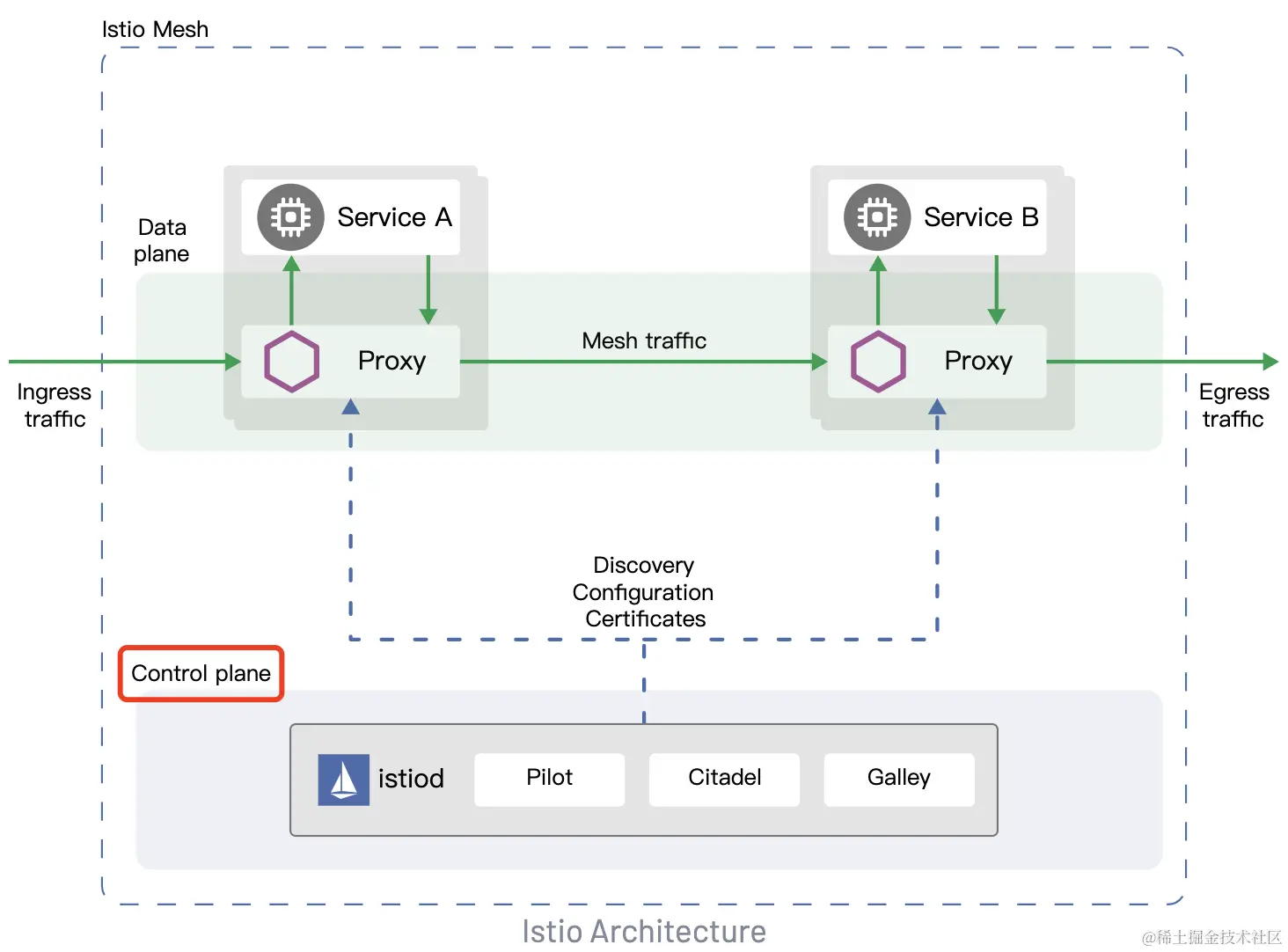 托管网格的控制面,部署在对所有云用户不可见的TKE集群。
